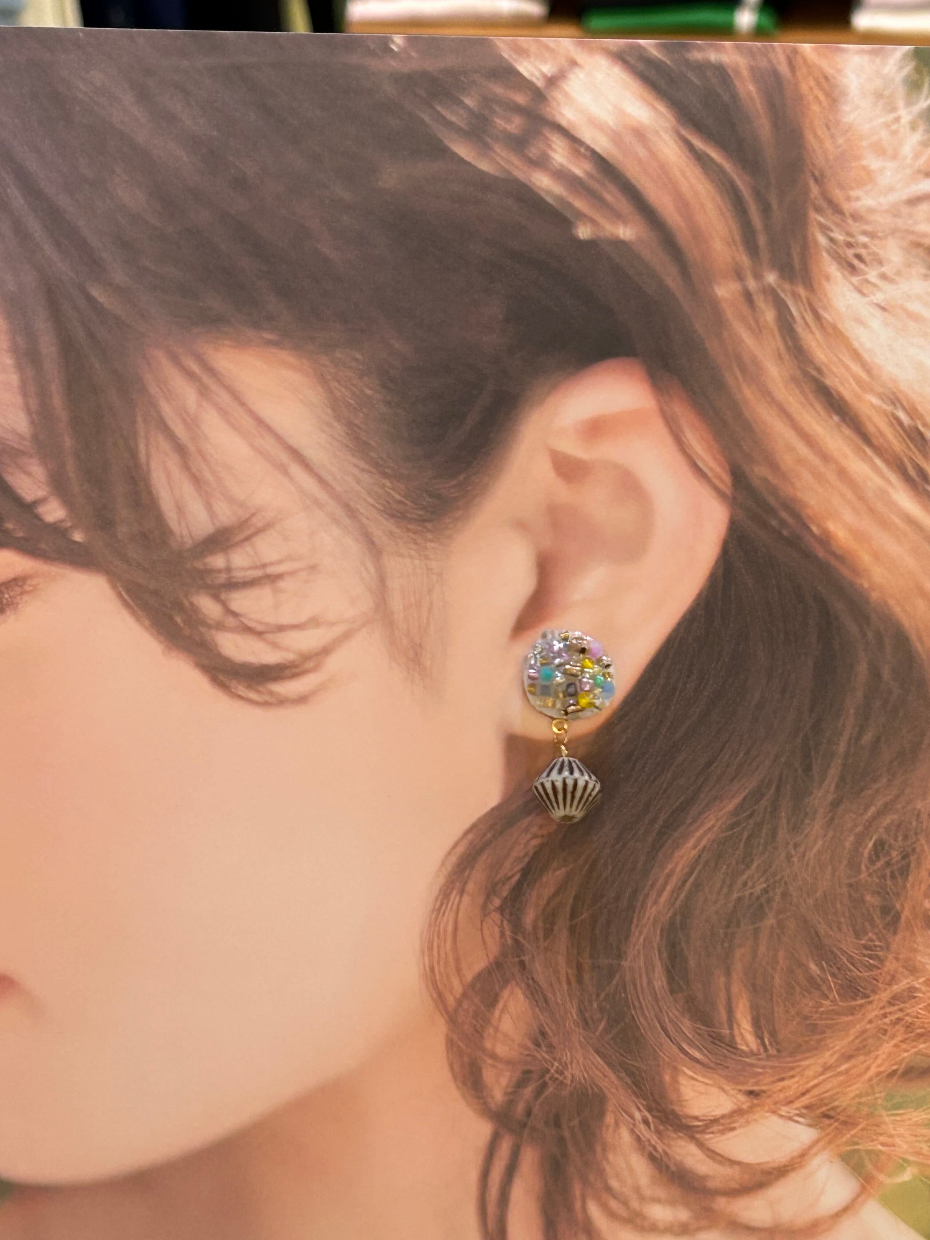 ビーズ刺繍そろばんビーズピアスm01