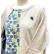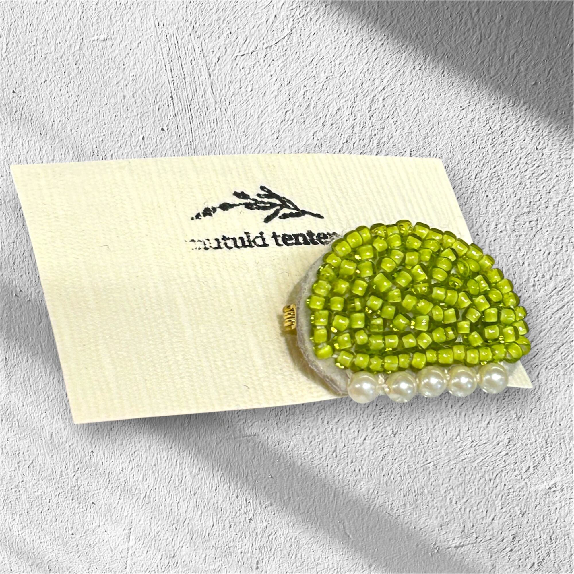 手作りの温もりが感じられるビーズ刺繍の半円ブローチです。色とりどりのビーズが織りなす美しい模様が、シンプルなコーディネートに華やかさをプラスします。普段のお出かけや特別な日のお洒落にもピッタリなアイテムです。