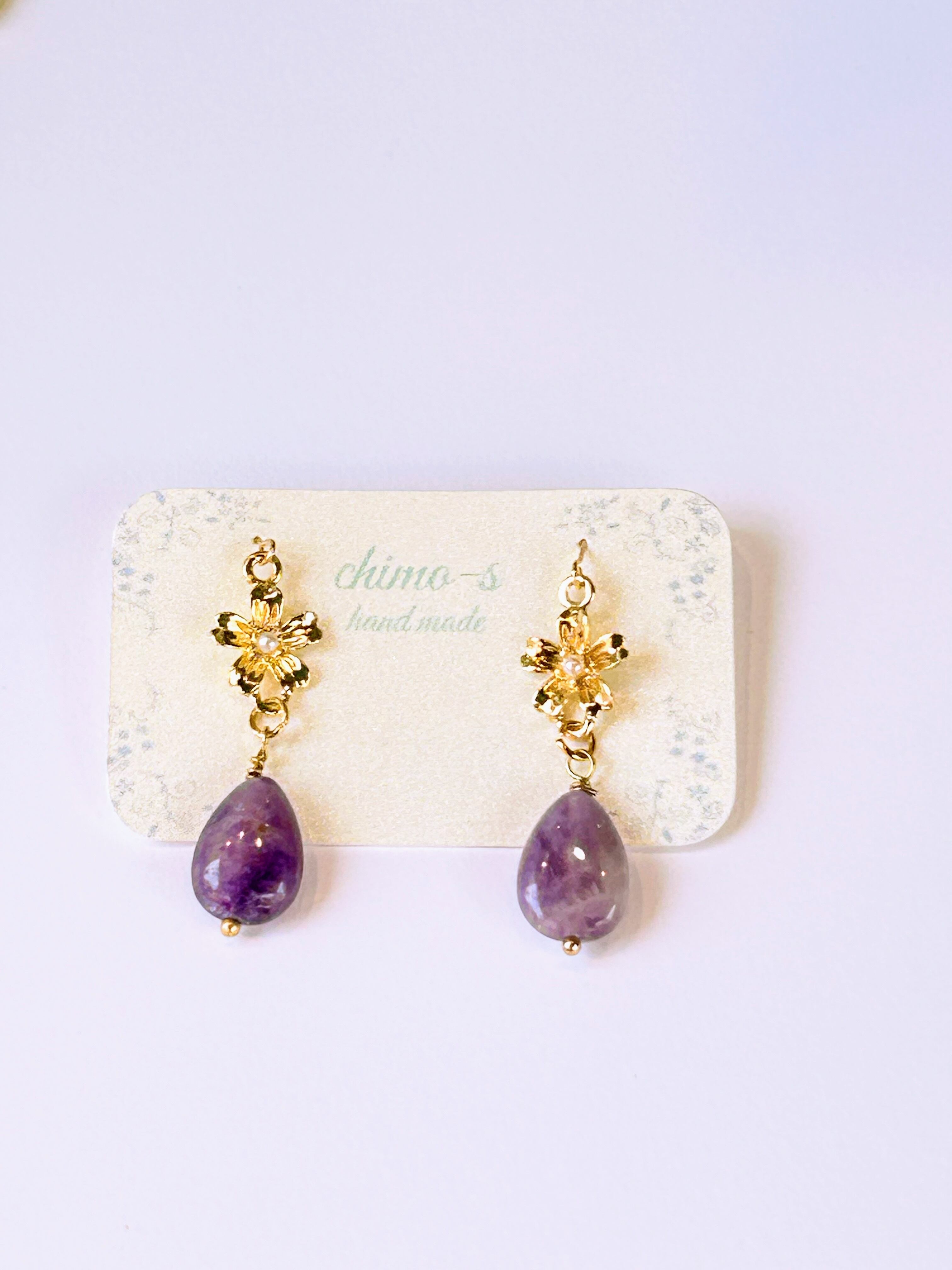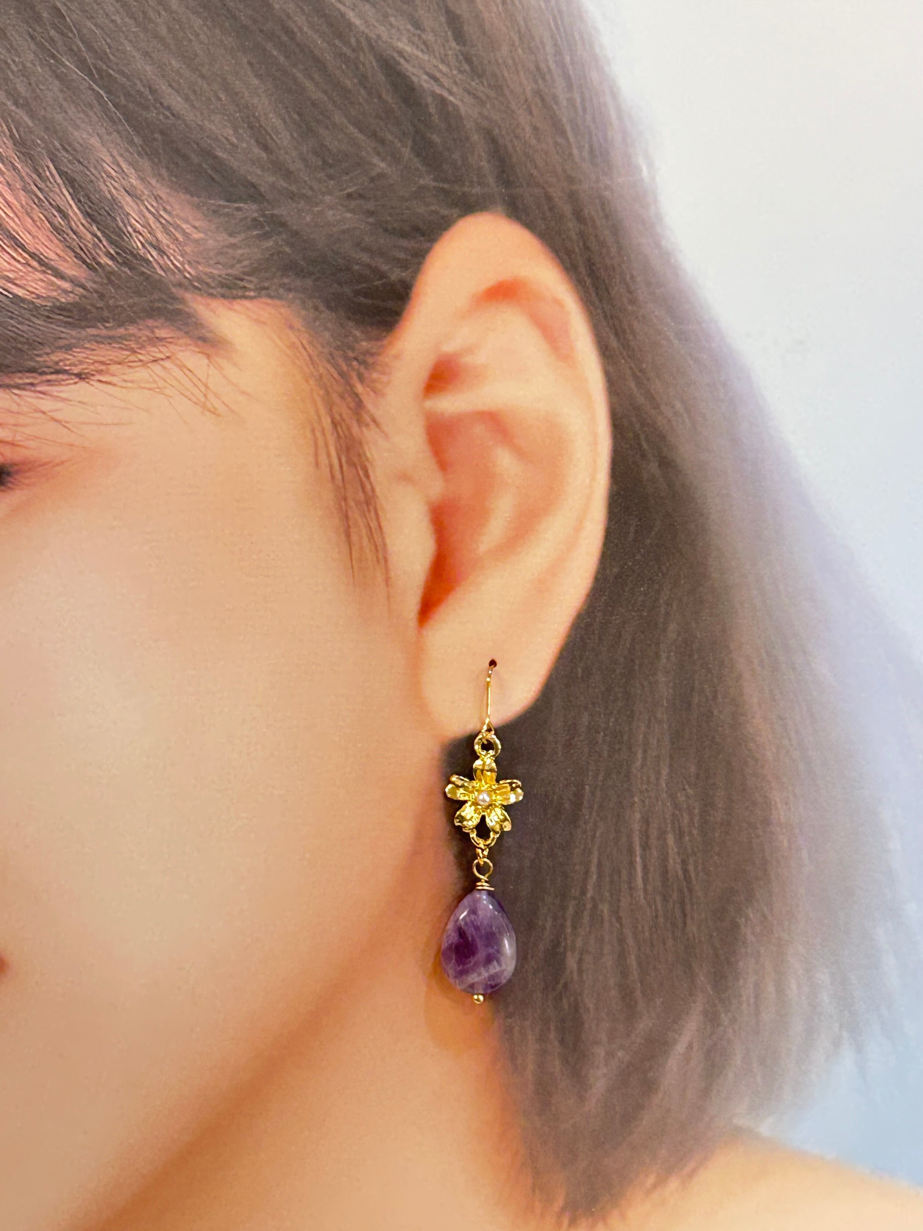 アメジストとお花のピアス