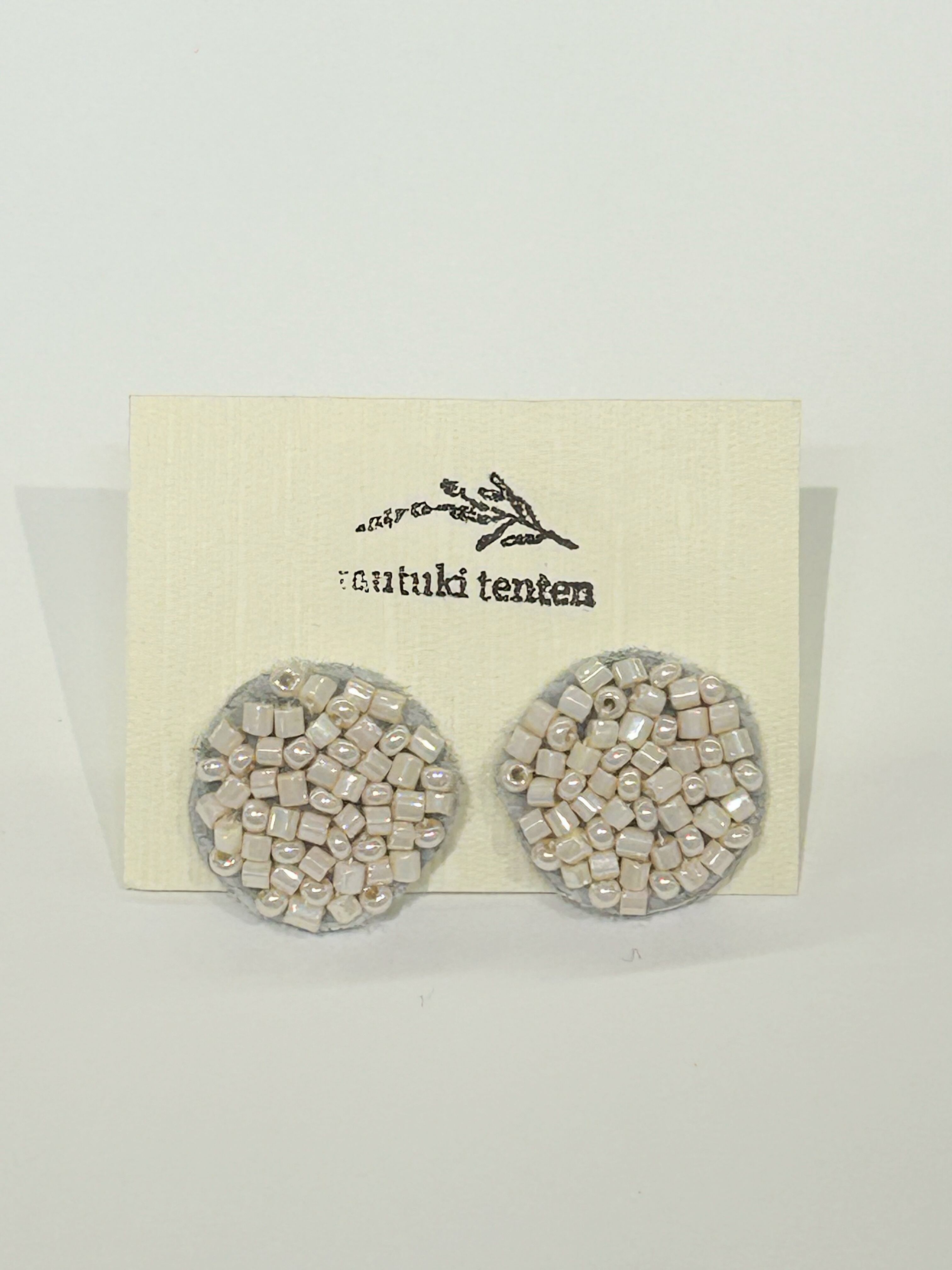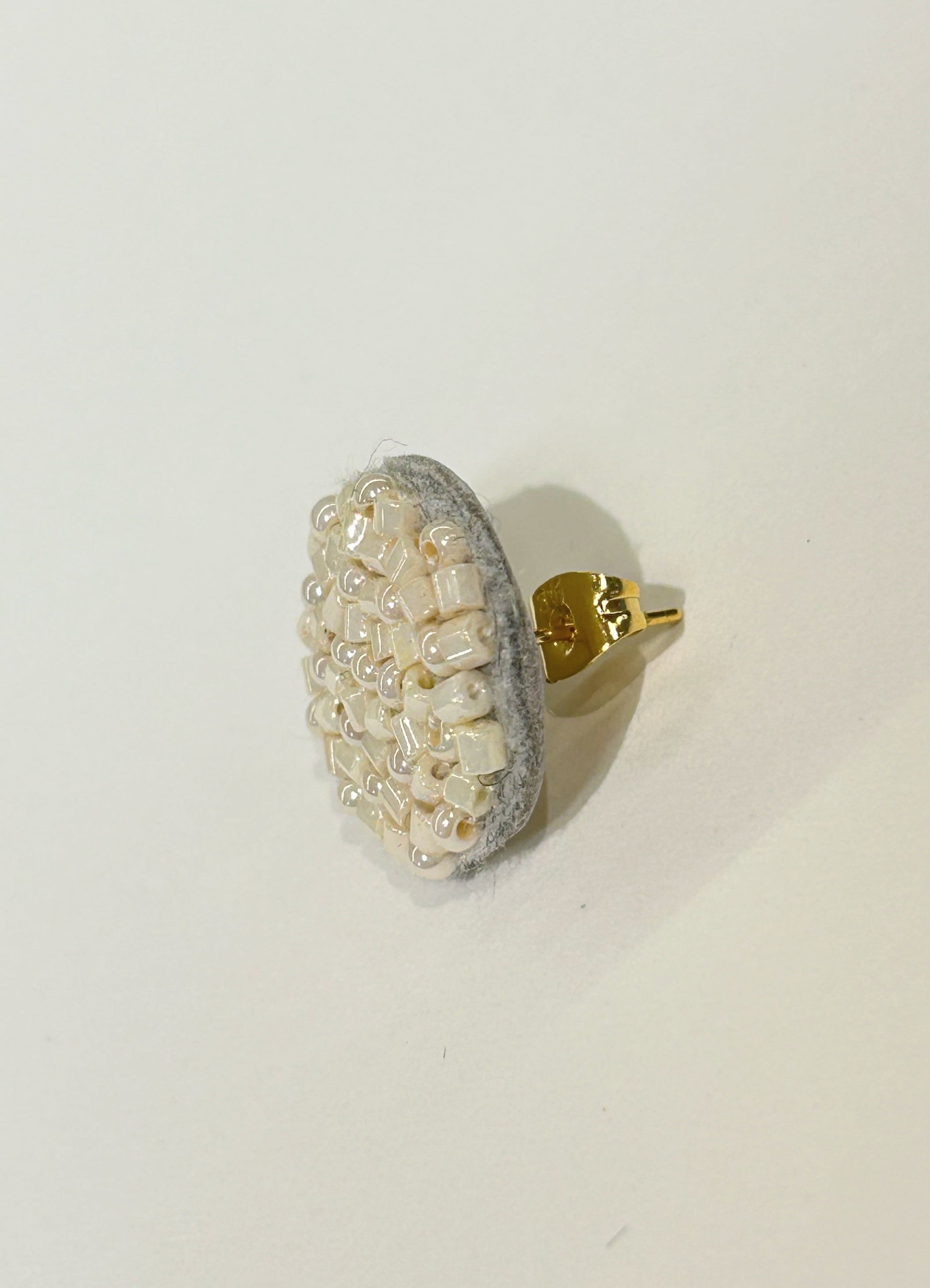 ホワイトワントーンのビーズ刺繍ピアス m07